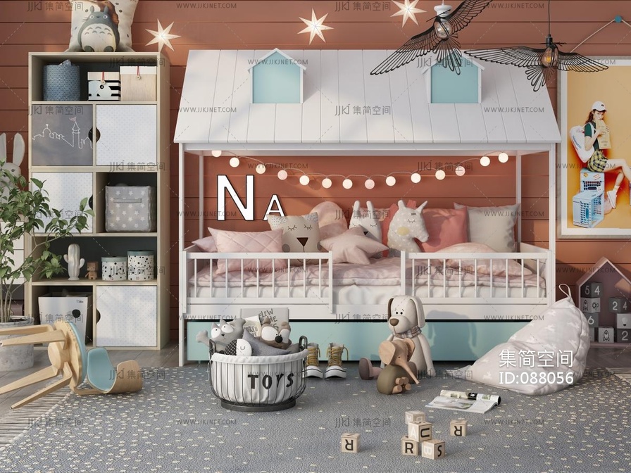 Z18-0716现代儿童床玩具,单人床,玩具柜 3d模型下载 [模型ID:88056]