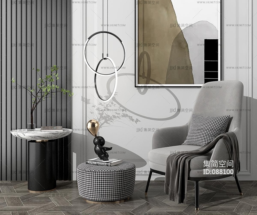 现代休闲椅边几单椅,小人雕塑 3d模型下载 [模型ID:88100]