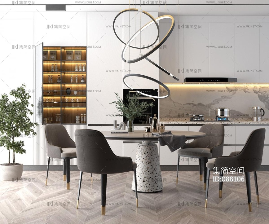 现代餐厅餐桌椅 3d模型下载 [模型ID:88106]