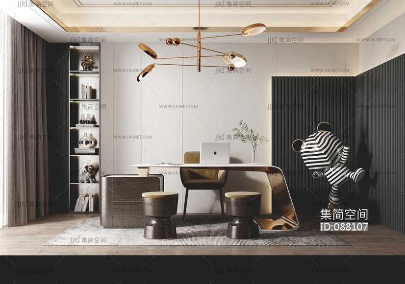 现代轻奢书房,书桌椅,公仔 3d模型下载 [模型ID:88107]