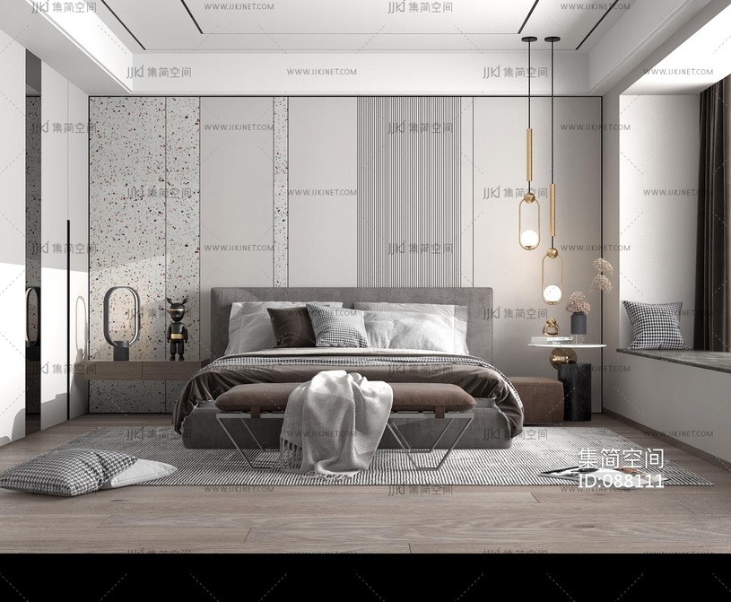 现代卧室双人床 3d模型下载 [模型ID:88111]