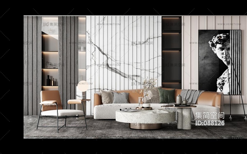 现代客厅沙发茶几,单人椅 3d模型下载 [模型ID:88126]