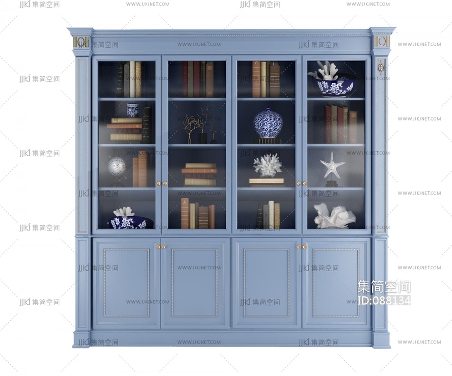 欧式美式书柜 3d模型下载 [模型ID:88134]