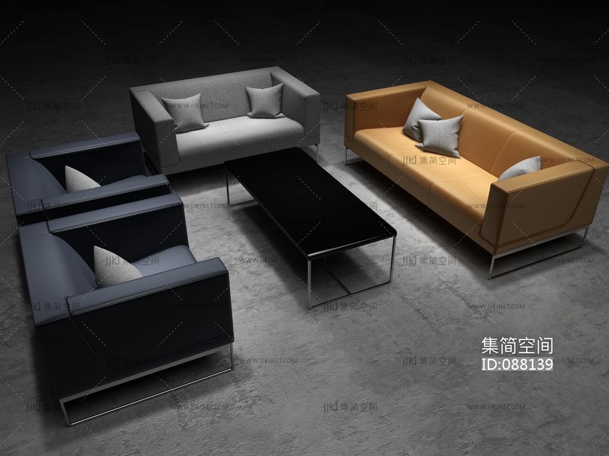 现代皮革办公沙发茶几 3d模型下载 [模型ID:88139]