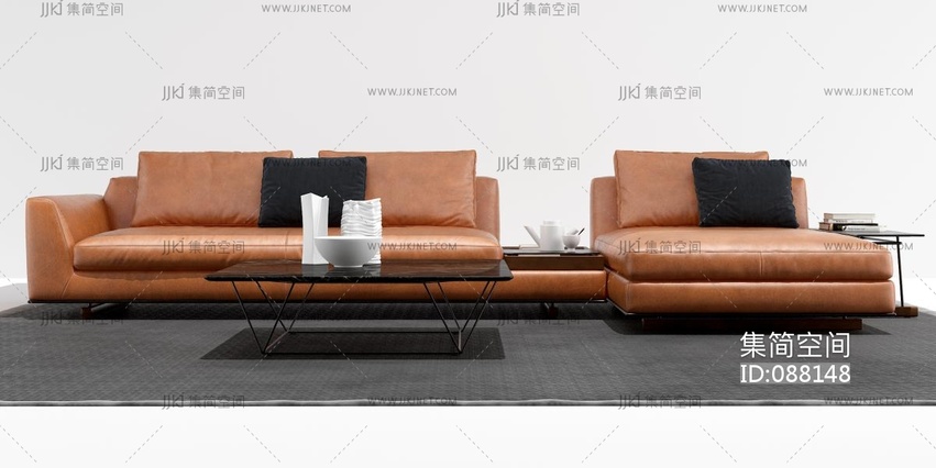 现代皮革转角沙发 3d模型下载 [模型ID:88148]
