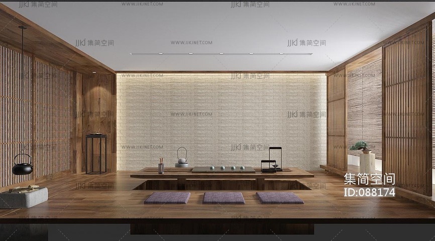 新中式日式榻榻米茶室书房禅室茶台 3d模型下载 [模型ID:88174]