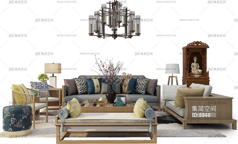 Z16-0918中式沙发茶几榻佛龛 3d模型下载 [模型ID:8848]