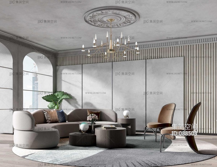 03-奶油中古沙发组合_沙发茶几组合_异形沙发_金属茶几_单人休闲椅_模块沙发3D模型3d模型下载