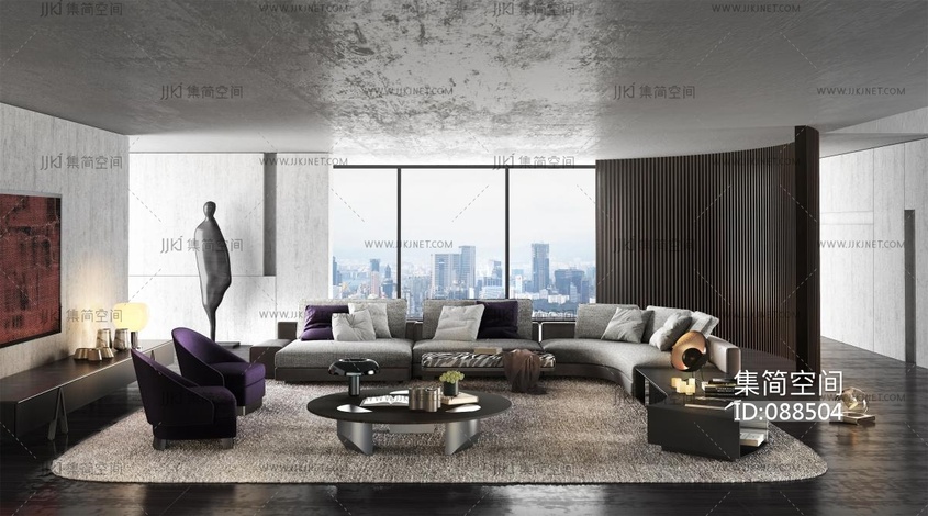米洛提 Minotti 现代弧形转角客厅,沙发茶几 3d模型下载 [模型ID:88504]