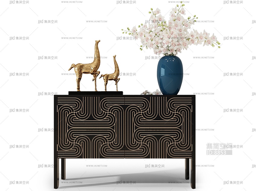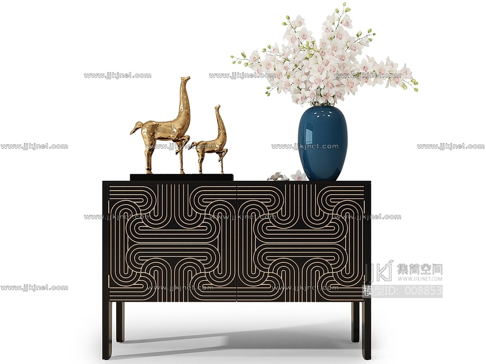 Z02-0919新中式装饰柜马雕塑花瓶 3d模型下载 [模型ID:8853]