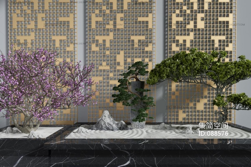 新中式小人钓鱼,雕塑水景,水晶吊灯,景观小景3d模型下载