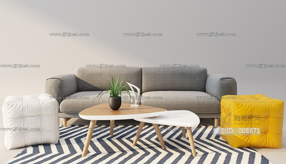 现代布艺沙发茶几组合3d模型下载