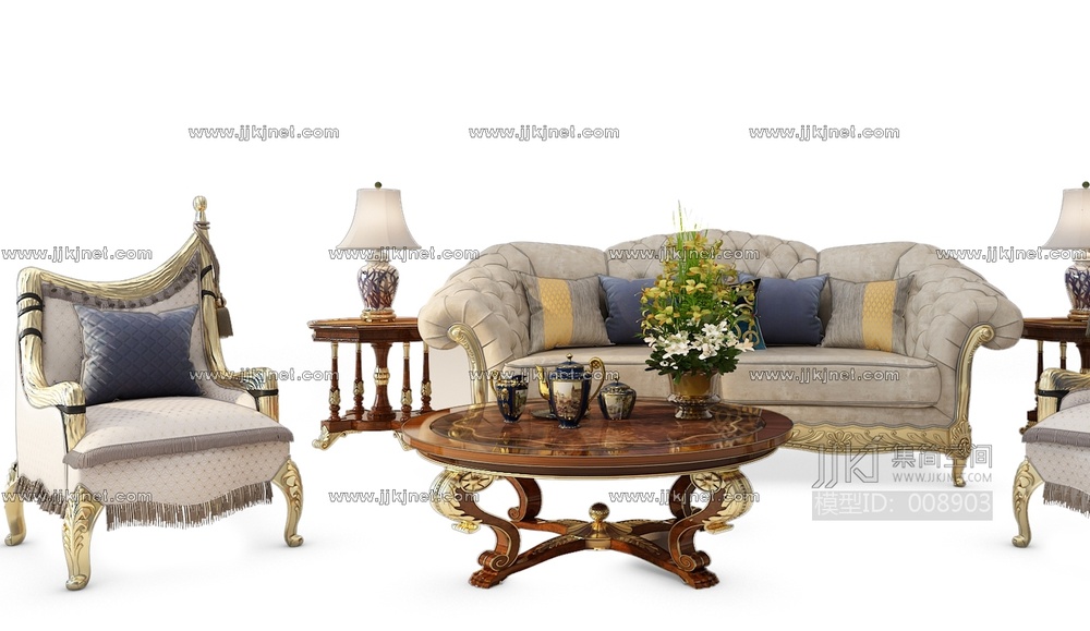 Z06-0901欧式古典布艺沙发茶几组合 3d模型下载 [模型ID:8903]