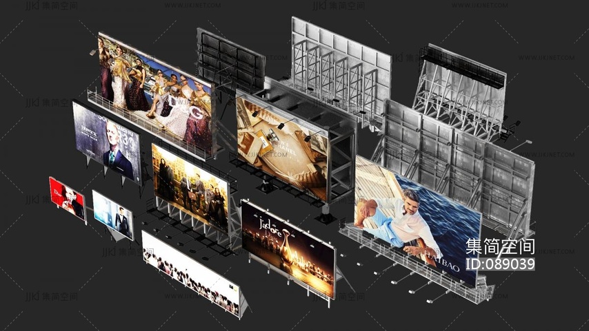 现代铁艺户外广告牌打包 3d模型下载 [模型ID:89039]