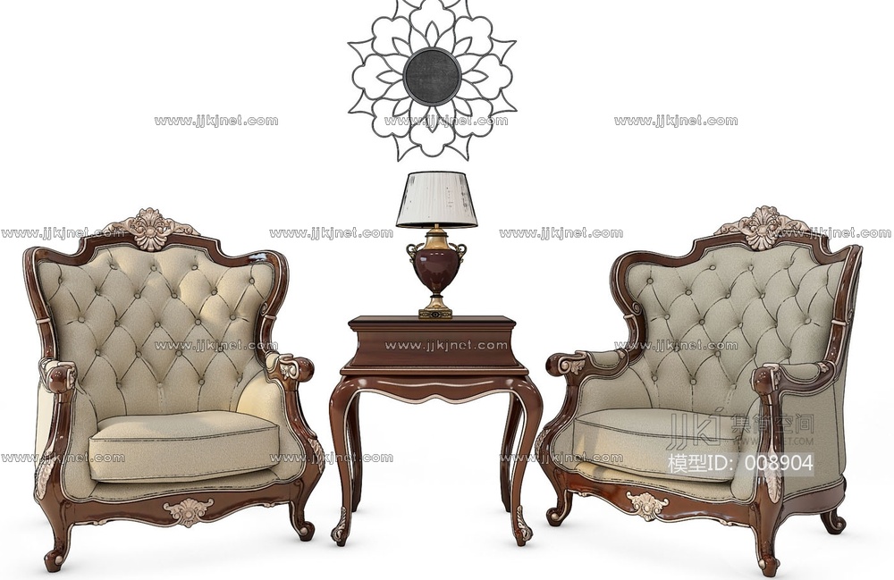 Z07-0901欧式古典单人沙发茶几 3d模型下载 [模型ID:8904]