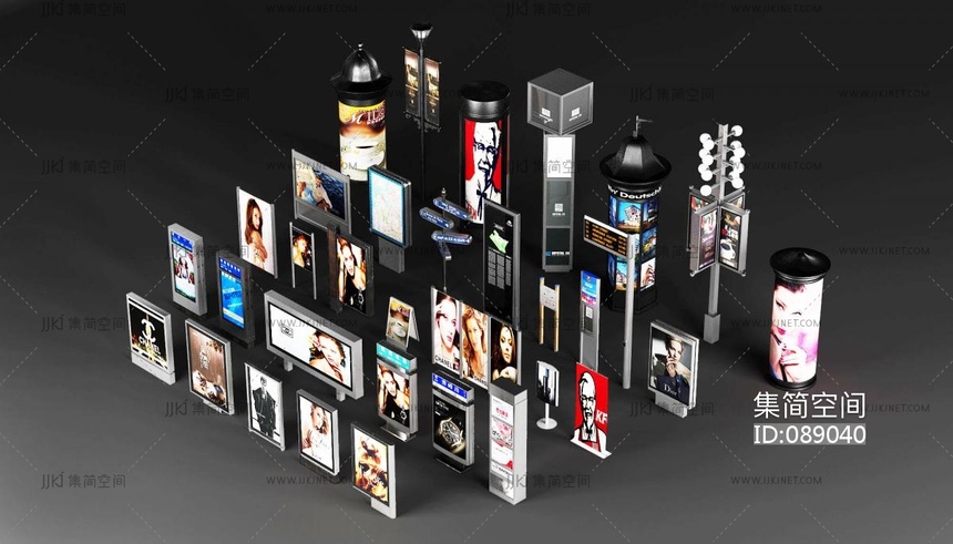 现代欧式户外圆形立柱钢架结构灯箱广告, 3d模型下载 [模型ID:89040]