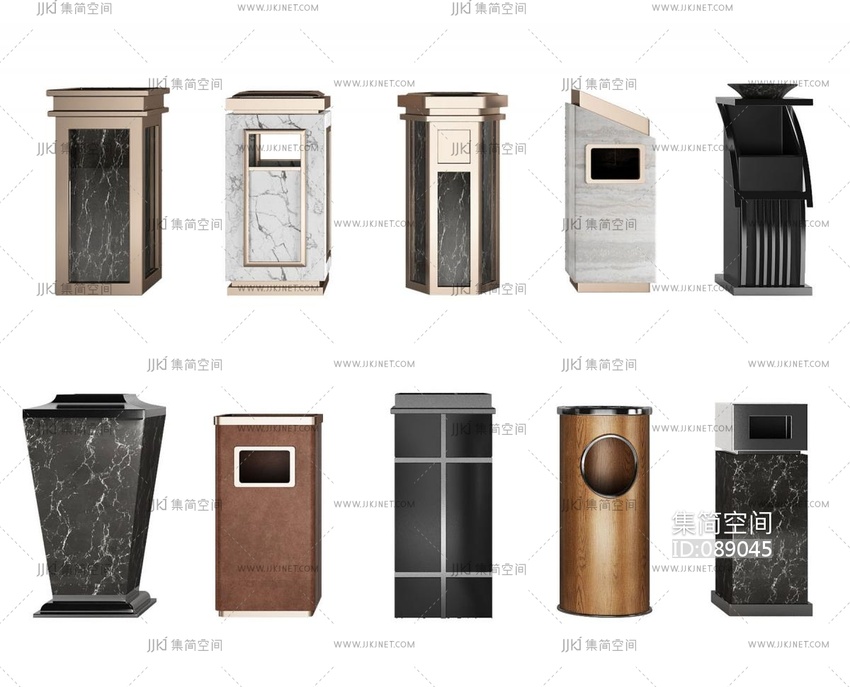 现代金属大理石公用垃圾桶,垃圾箱 3d模型下载 [模型ID:89045]