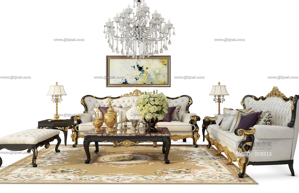 Z17-0901古典欧式约沙发茶几组合 3d模型下载 [模型ID:8913]