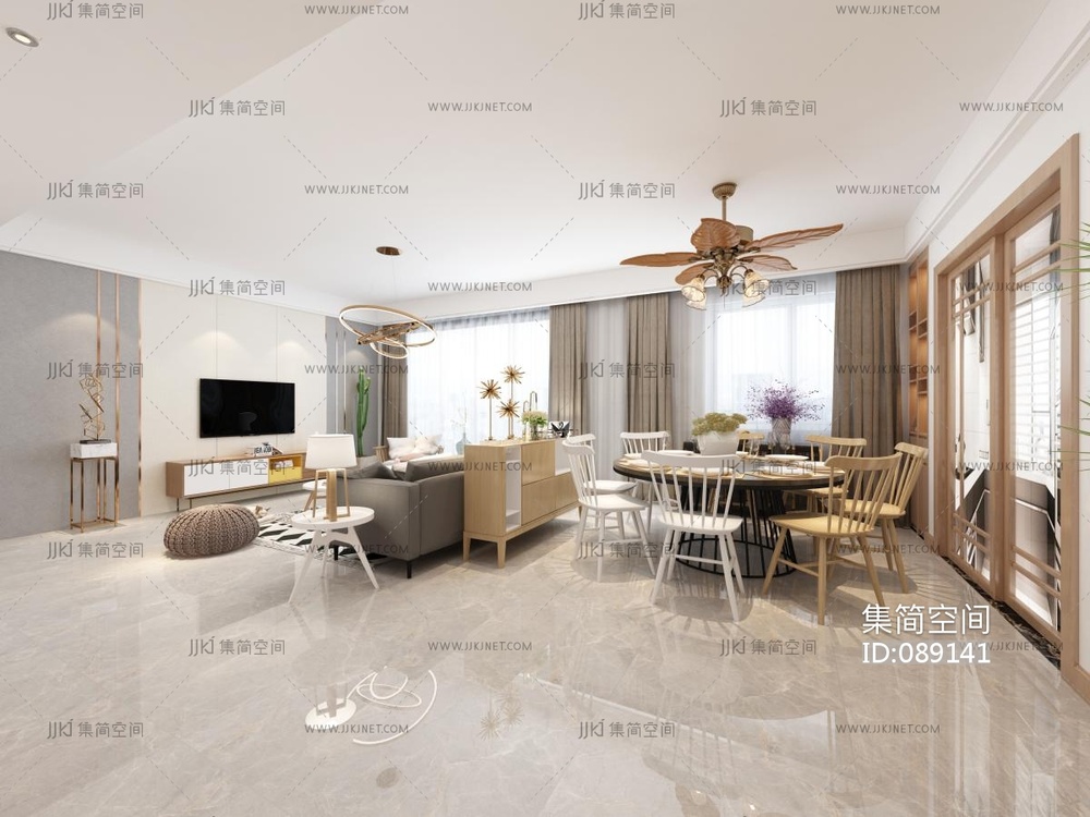 中古风客厅,美式客厅,圆形茶几,装饰画,移动电视,3d模型下载