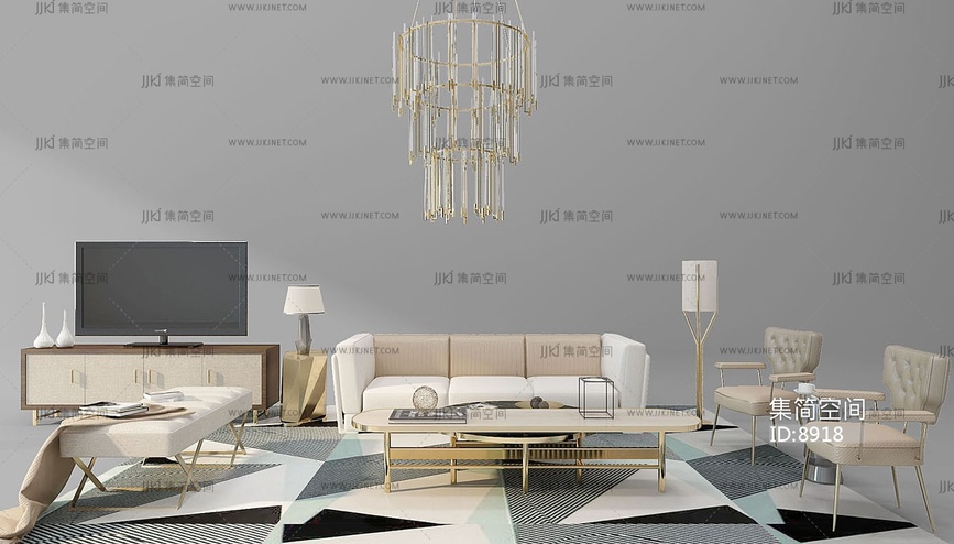 Z01-0913简欧沙发茶几吊灯组合 3d模型下载 [模型ID:8918]