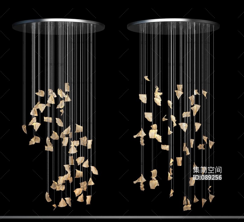 新中式屋檐瓦片大型吊灯古建瓦片吊灯3D模型3d模型下载