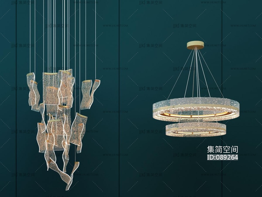 现代新中式水晶圆环吊灯 3d模型下载 [模型ID:89264]