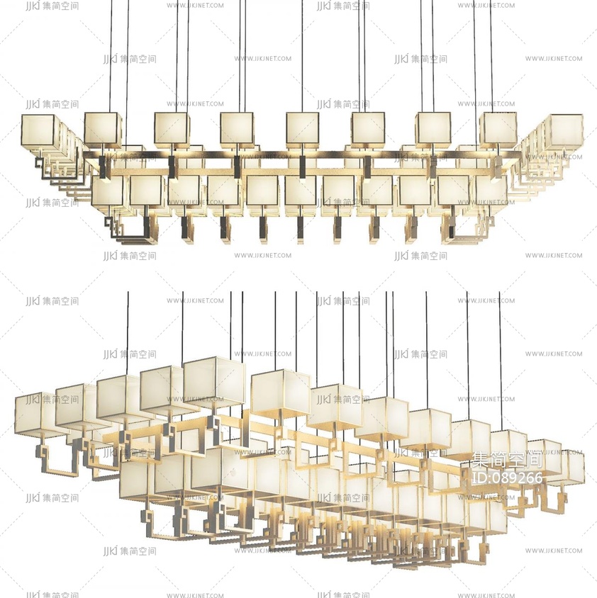 新中式吊灯长条吊灯3D模型(2021)3d模型下载