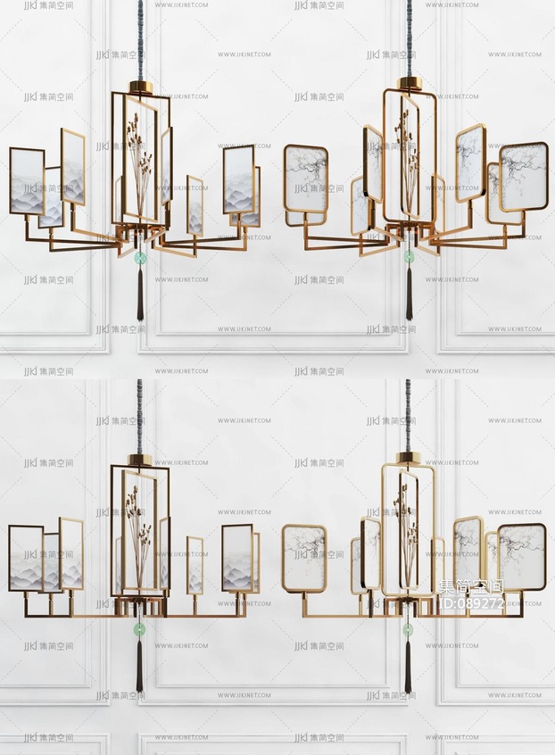 新中式金属铁艺吊灯 3d模型下载 [模型ID:89272]