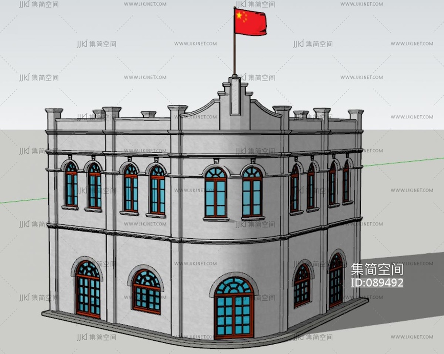 15民国风建筑外观 su草图模型下载 [模型ID:89492]