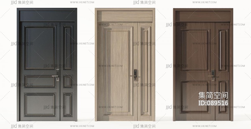 新中式单开门入户门_子母防盗门3D模型3d模型下载