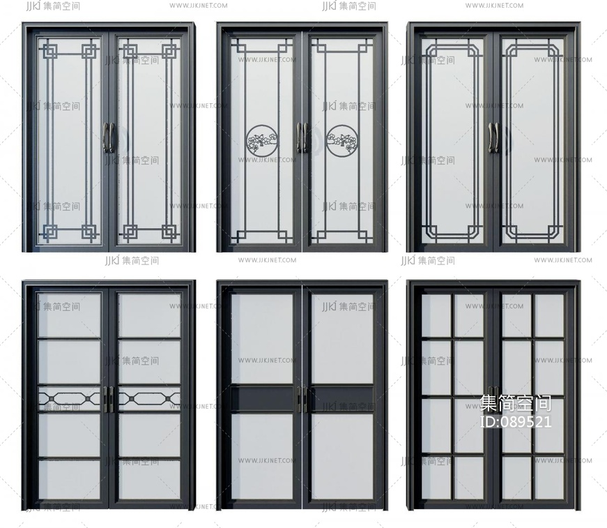 现代玻璃门玻璃双开门3D模型3d模型下载
