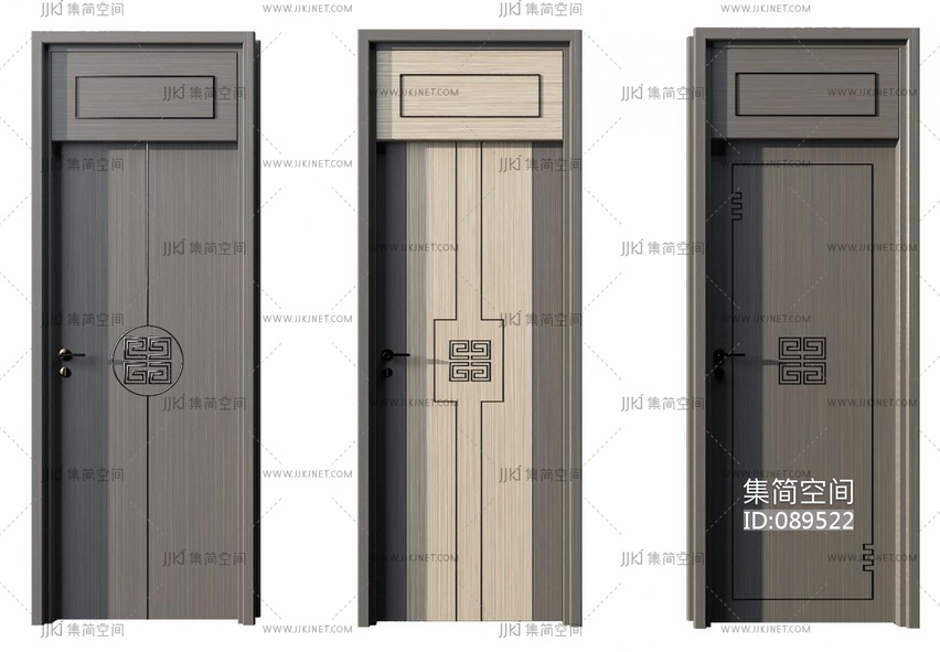 新中式单开门入户门_子母防盗门3D模型3d模型下载