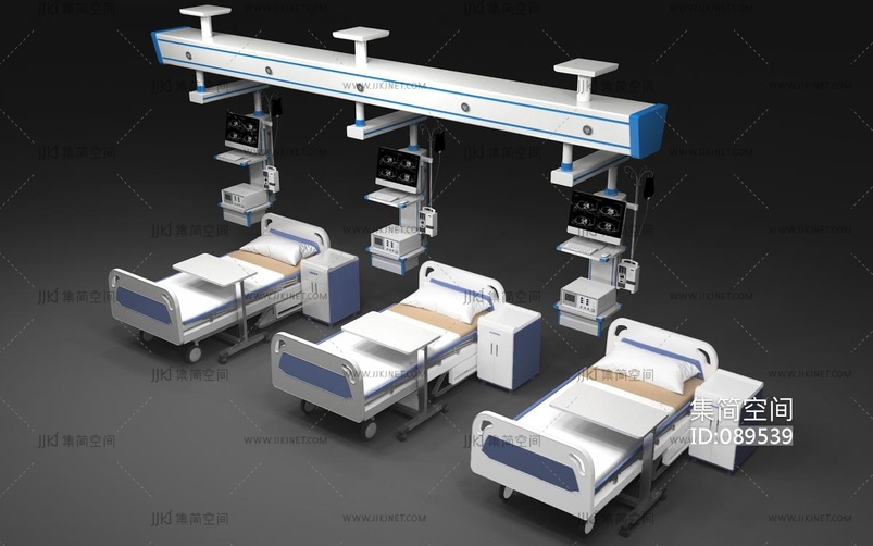 现代医院设备病床医疗设备氧气瓶 担架病床 3d模型下载