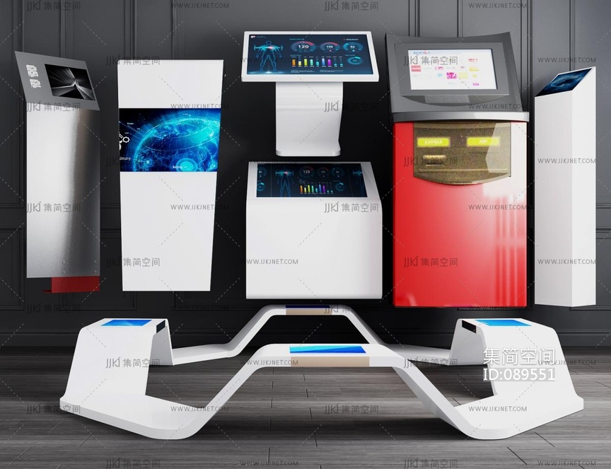 13-现代科技触控一体机_广告机_落地一体机_查询机_展厅展机多媒体查询机智能3D模型vrrrr3d模型下载