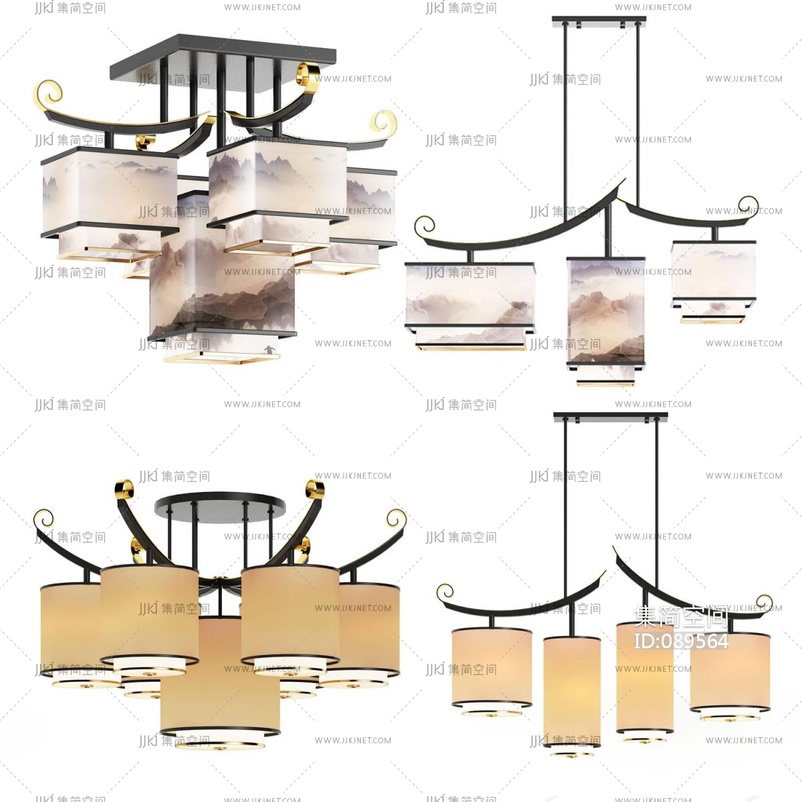 新中式吊灯吸顶灯组合 3d模型下载 [模型ID:89564]