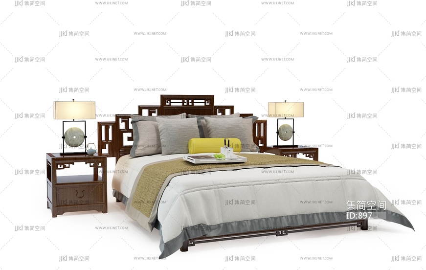 Z27-0619东南亚新中式高背休闲长椅沙发罗汉床纱幔3d模型下载