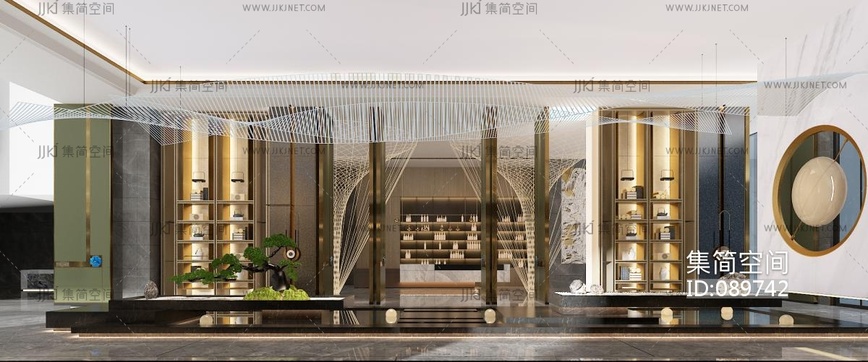 新中式酒店会所前台 3d模型下载 [模型ID:89742]