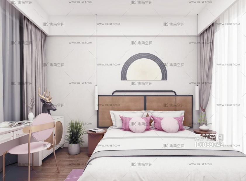 现代轻奢卧室,女儿房 3d模型下载 [模型ID:89743]