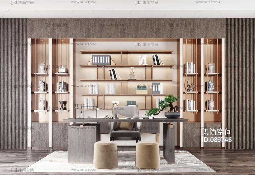 现代轻奢书房 3d模型下载 [模型ID:89746]