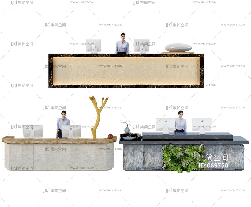 新中式前台,接待台 3d模型下载 [模型ID:89750]