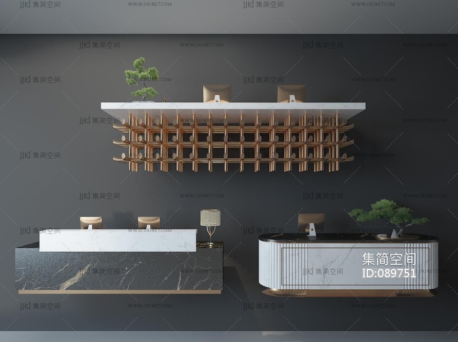 新中式前台 接待台 3d模型下载 [模型ID:89751]