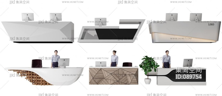 现代办公前台接待台 服务台组合 3d模型下载 [模型ID:89754]