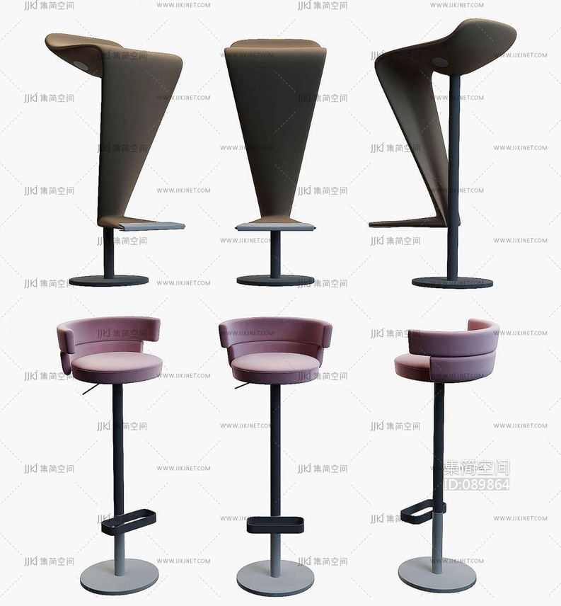 现代靠背吧椅组合 3d模型下载 [模型ID:89864]