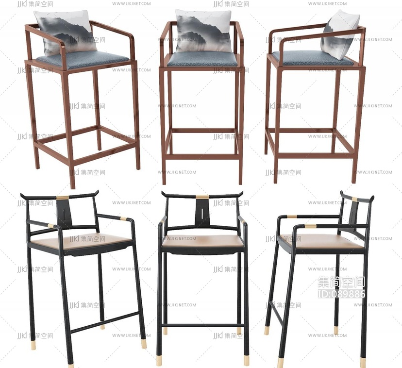 新中式靠背吧台椅 3d模型下载 [模型ID:89886]