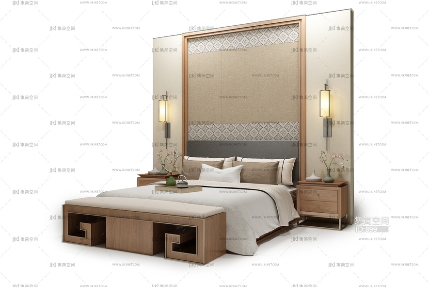 Z27-0619东南亚新中式高背休闲长椅沙发罗汉床纱幔3d模型下载