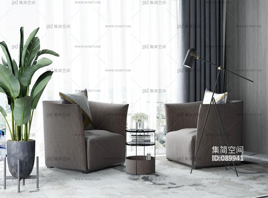 现代单人沙发组合 3d模型下载 [模型ID:89941]