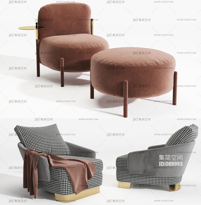 现代单人休闲沙发 3d模型下载 [模型ID:89993]
