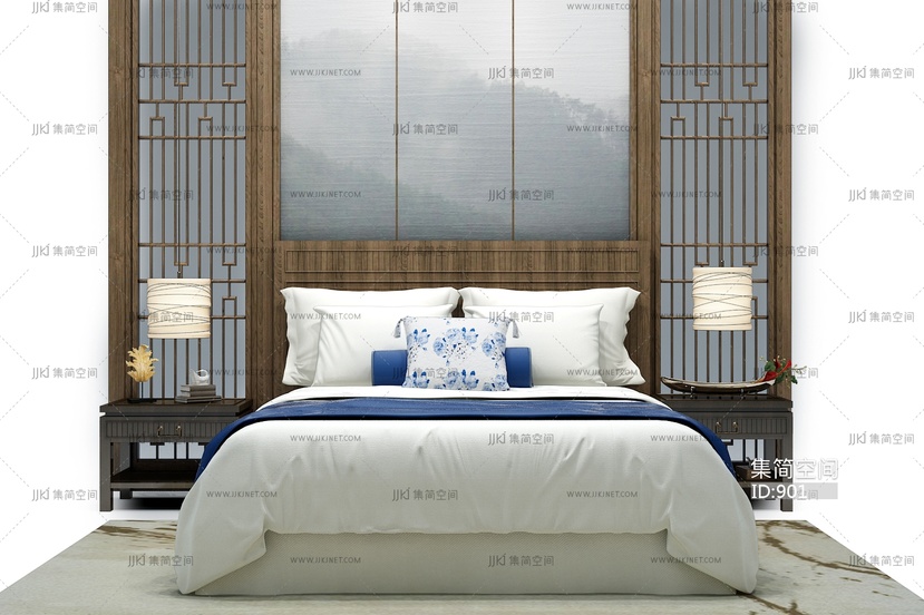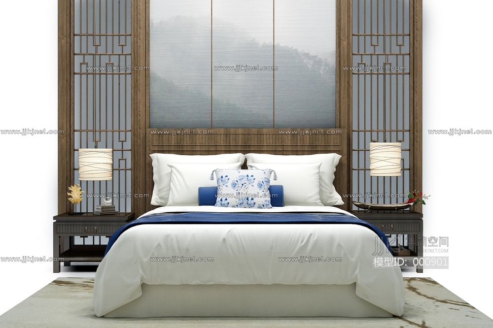 Z27-0619东南亚新中式高背休闲长椅沙发罗汉床纱幔3d模型下载