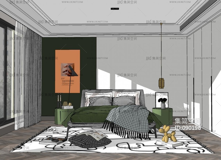 北欧现代卧室 su草图模型下载 [模型ID:90196]