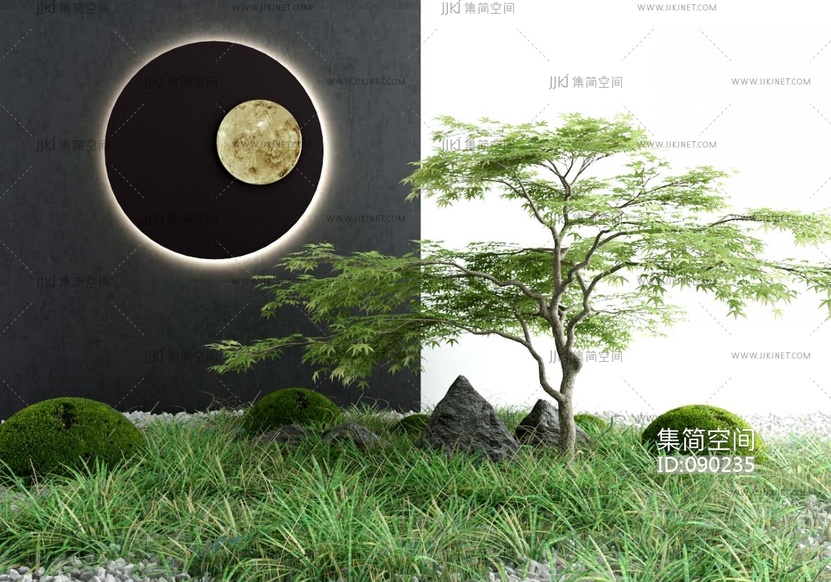 05中式庭院景观,矮树,草地 3d模型下载 [模型ID:90235]